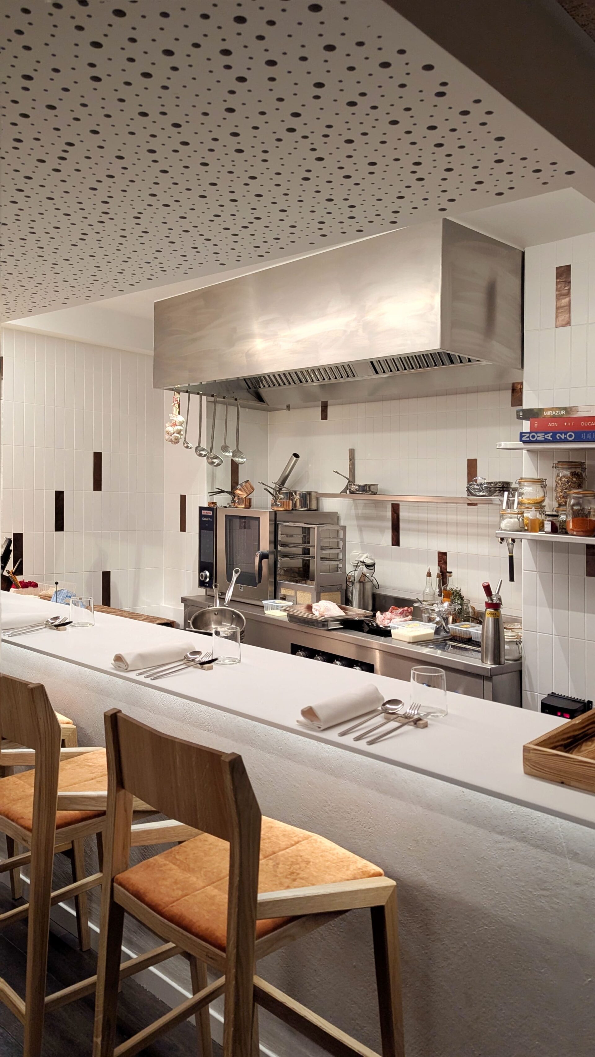 Pensé comme un lieu à taille humaine, Kokken ne compte que 18 couverts, dont 6 places au comptoir, pour une expérience volontairement intimiste et immersive. Ici, on ne vient pas seulement manger : on vient vivre la cuisine.