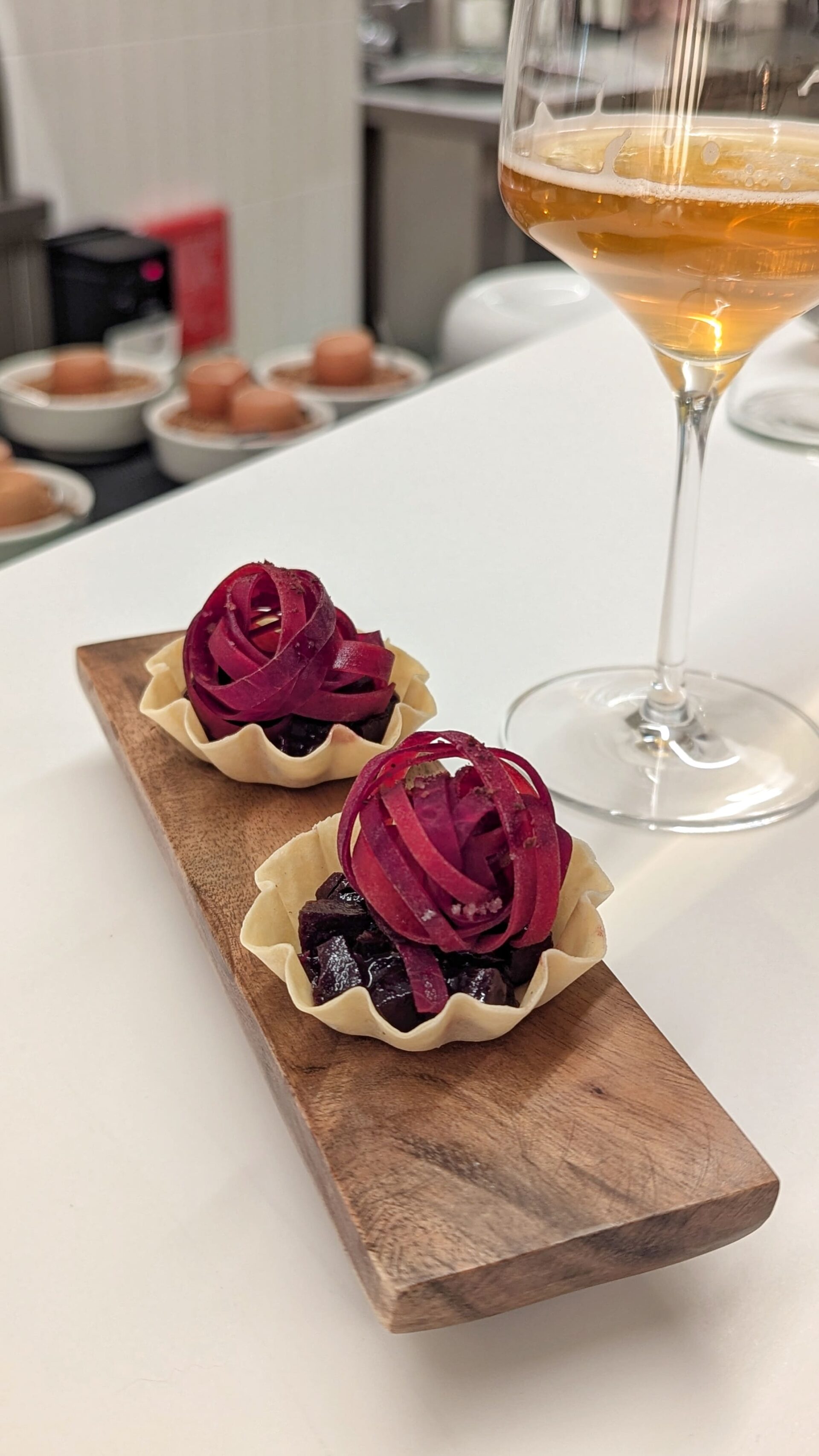 Tartelette de betterave cuite 6 heures, tagliatelles de betterave, vinaigre de framboise