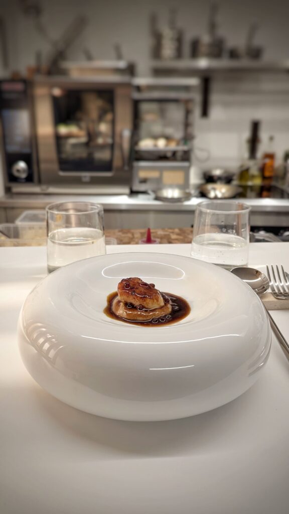 Dans l’assiette, le chef Frédéric Metzger propose une cuisine créative et affirmée, nourrie d’influences scandinaves, japonaises et françaises.