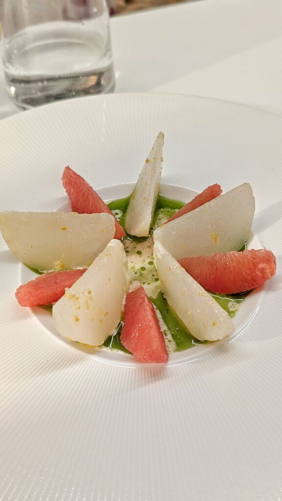 Navet et pamplemousse, crème de laurier, huile de persil