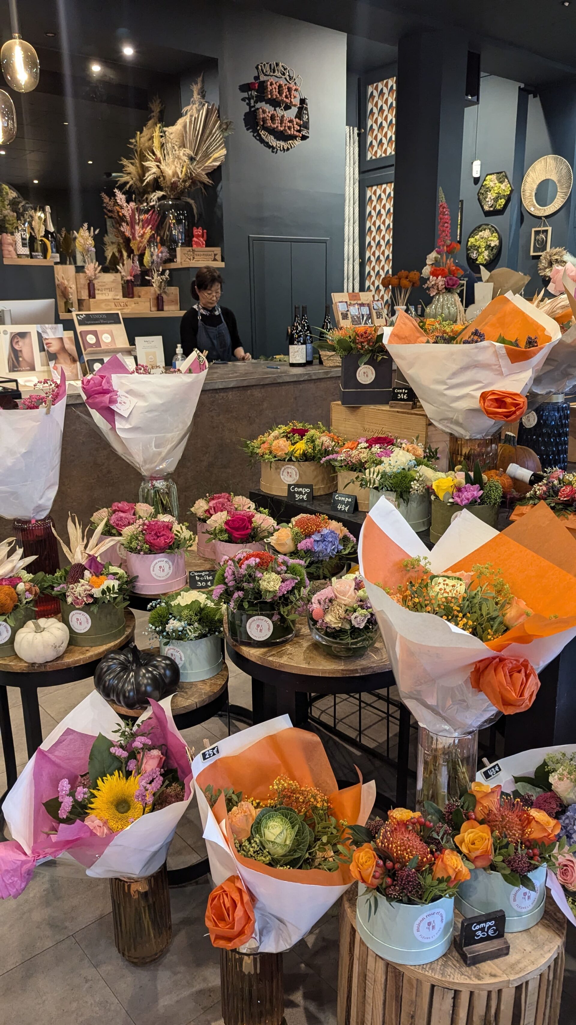 Fleurs, vins et objets de décoration sous le même toit