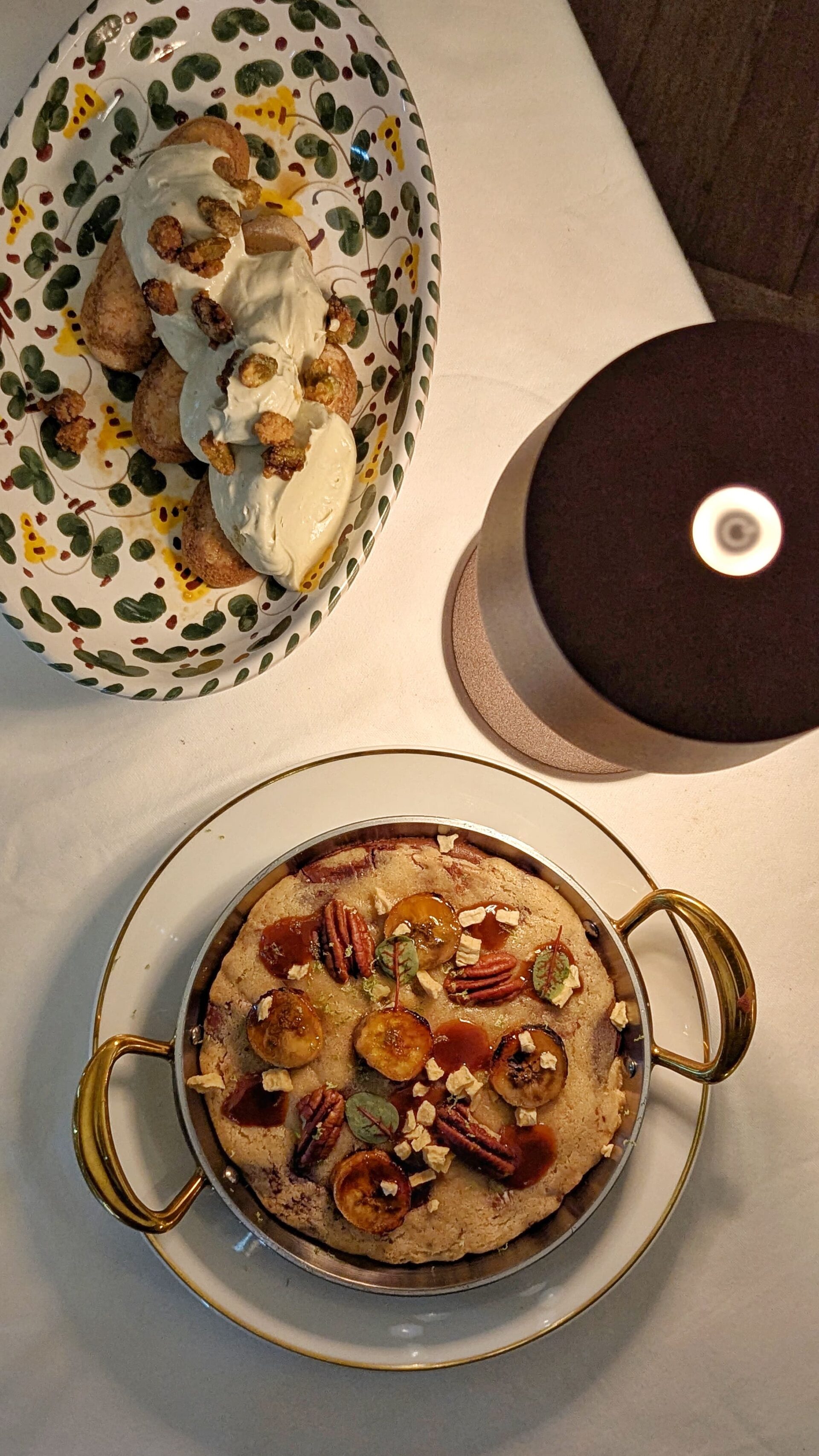- Cookie minute chocolat, banane et citron vert, servi chaud, idéal à partager.